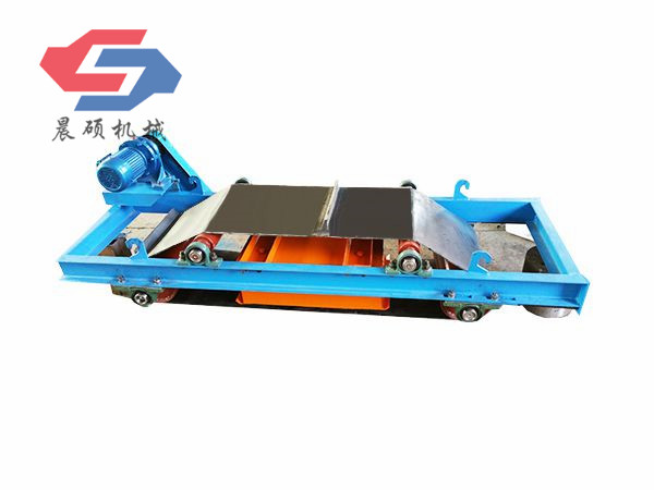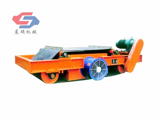 電磁除鐵器的基礎(chǔ)上增加了驅(qū)動電機(jī)、滾筒、帶刮板的缷鐵膠帶等組成的缷鐵機(jī)構(gòu)。在工作過程